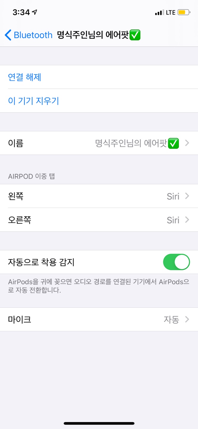 한 두푼하는 에어팟이 아니기에 본인이 지어주는 이름으로 더 애착을 갖을 수 있게 해보시는걸 추천드립니다. 매일 블루투스 연결시에 마주하는 이름을 직접 설정해 보시기 바랍니다.