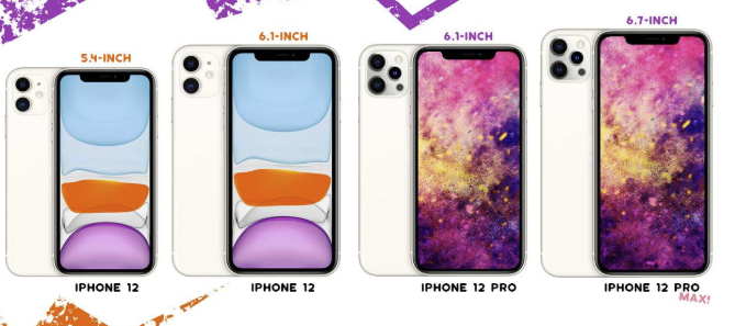 좌측부터 소개하자면 아이폰12가 두개로 출시된다고합니다. 아이폰12(5.4인치),아이폰12(6.1인치) 작은 크기와 큰 크기로 소비자의 가격부담을 애초에 줄여줄 좋은 방안인 것 같습니다. 아이폰12 5.4인치를 아이폰 미니라고하여 불려지는 경우가 있는 것 같습니다. 이또한 확실하진 않지만 알고 계시면 좋을 것 같습니다. 항상 아이폰은 크기와 관련된 이야기는 끊임없이 나오고 있기 때문입니다. 아이폰12 프로, 아이폰12 프로맥스 총 4가지로 출시 됩니다.